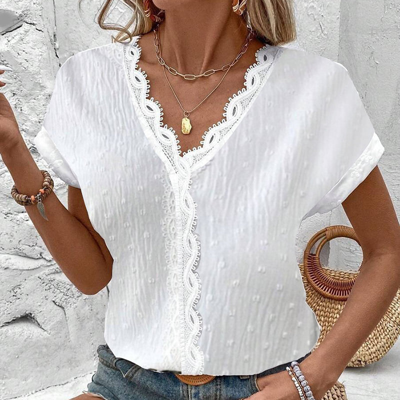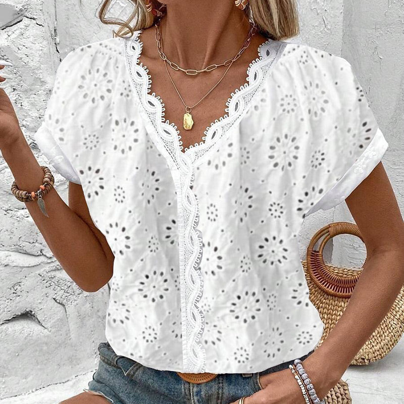 CHIC SHORT SLEEVE: Krótkie rękawy zapewniają stylowy i wygodny krój, idealny zarówno na ciepłe, jak i przejściowe pory roku. Zachowaj chłód, styl i wygodę przez cały dzień dzięki tej wszechstronnej koronkowej bluzce.