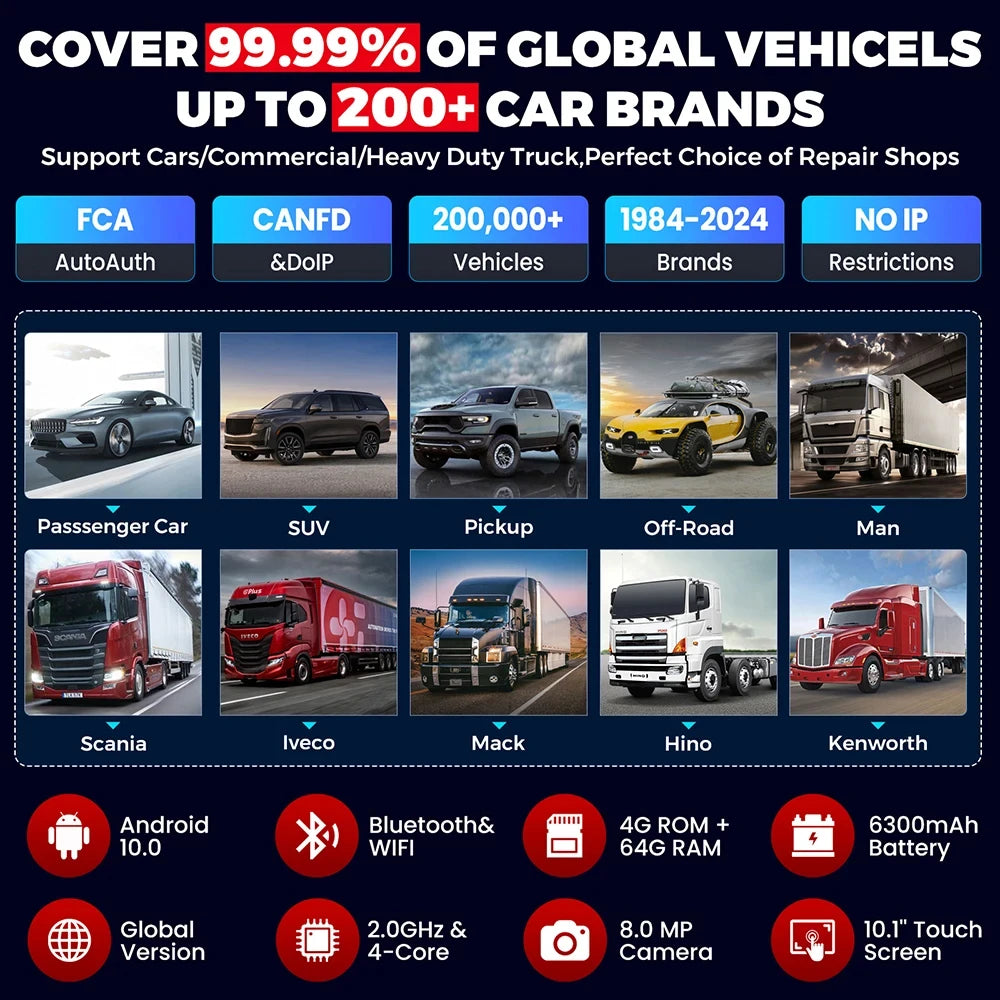 LAUNCH X431 PRO3S+ HDIII może testować pojazdy z instalacją 12 V i ciężarówki z instalacją 24 V (zarówno benzynową, jak i wysokoprężną)
