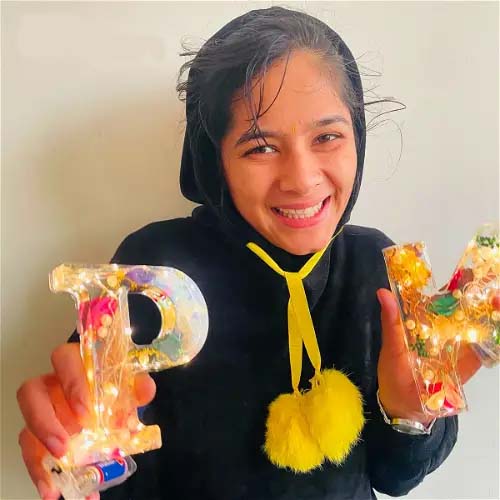 Rozświetl swoją przestrzeń urzekającym blaskiem naszej kwiatowej lampki nocnej, starannie wykonanej z suszonych kwiatów zamkniętych w krystalicznie czystej żywicy. Ten spersonalizowany wzór alfabetu dodaje odrobinę natury i elegancji każdemu pomieszczeniu, dzięki czemu jest idealnym prezentem lub wyjątkowym elementem wystroju.