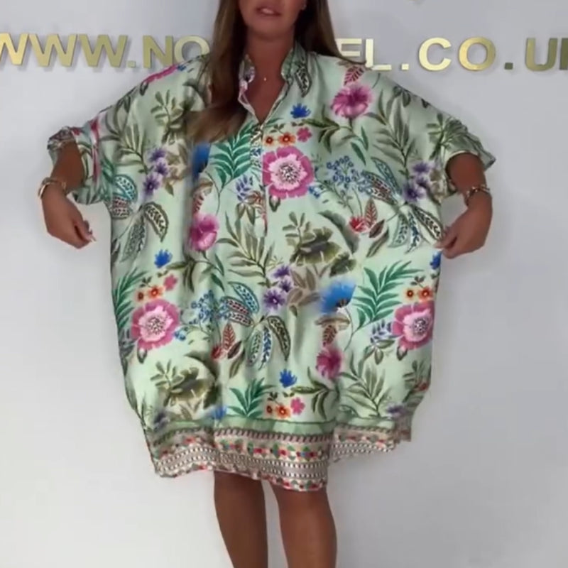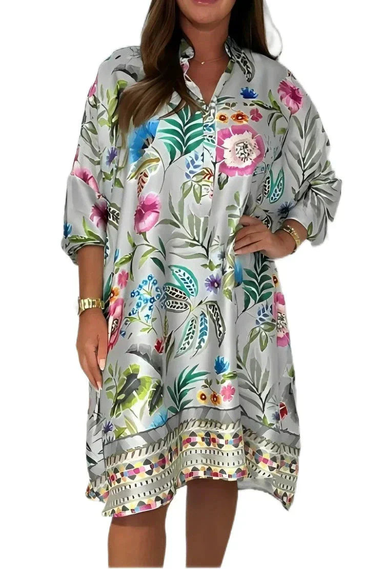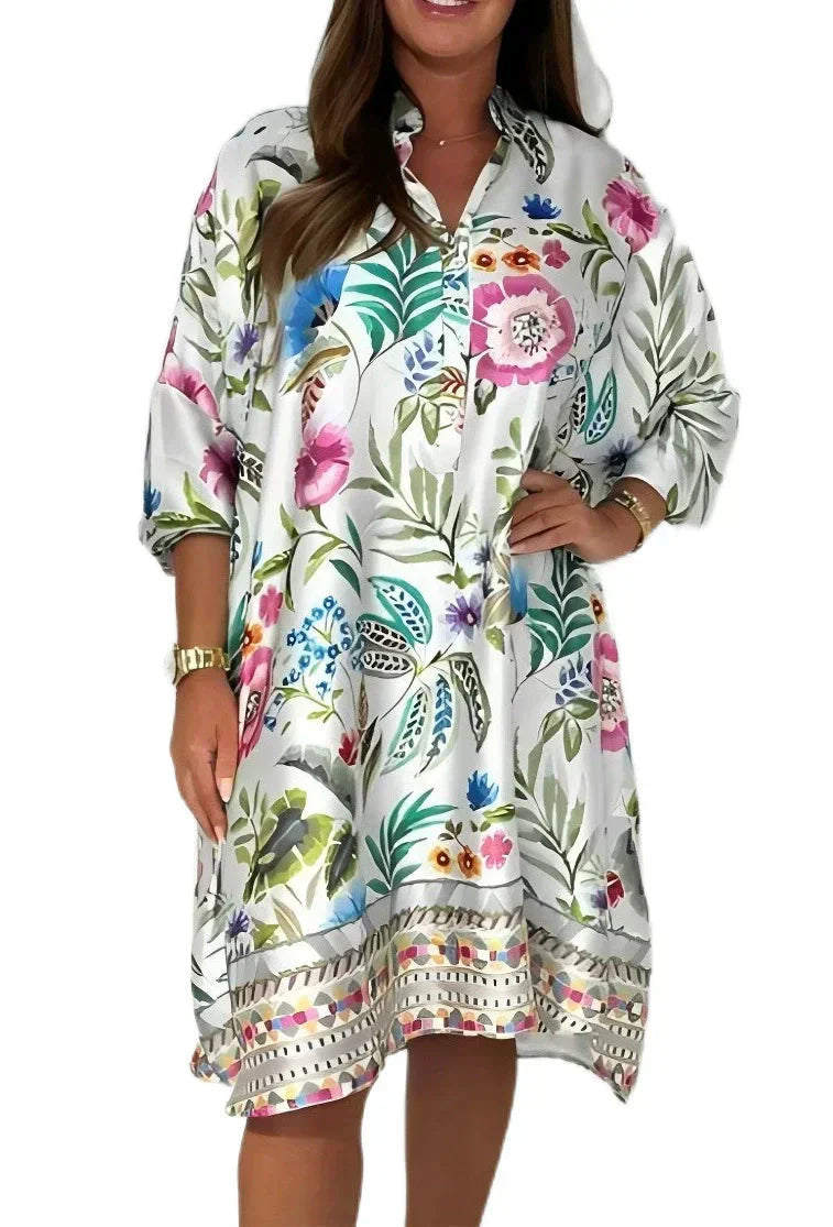 🌺Luźna sukienka w kwiaty z dekoltem w serek zapinanym na guziki