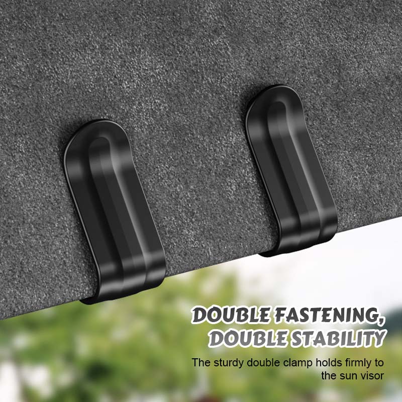 The sturdy double clamp holds securely to the sun visor – nothing wobbles, nothing falls.