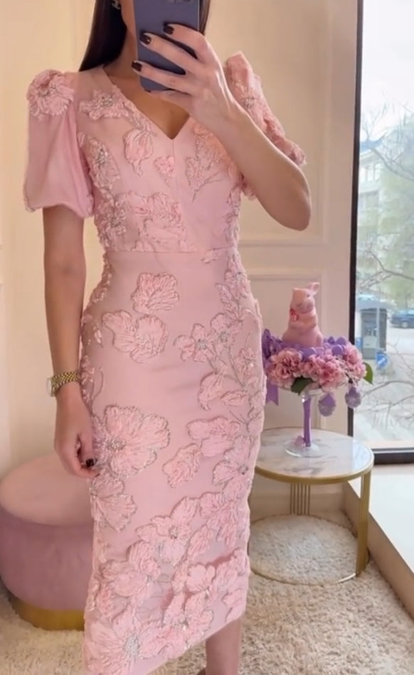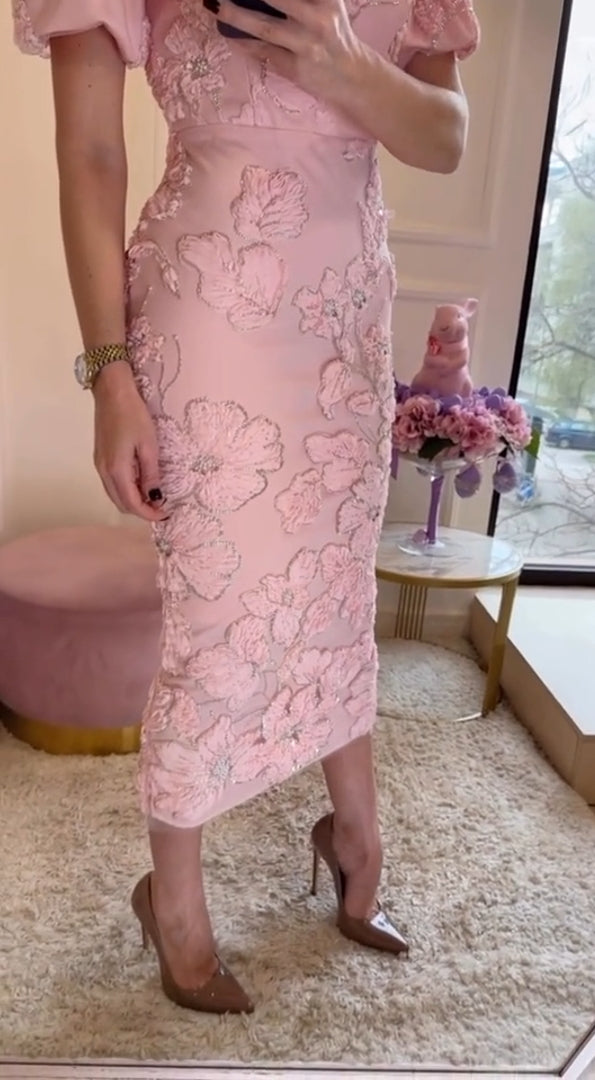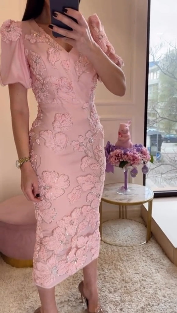Letnia elegancka sukienka damska z haftowanymi kwiatami i kryształkami