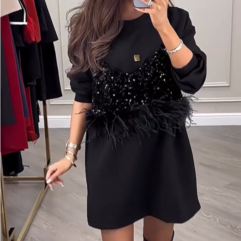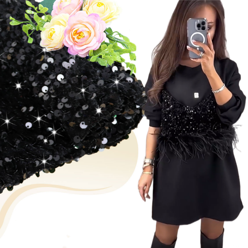 Modna damska dwuczęściowa sukienka z czarnymi cekinami