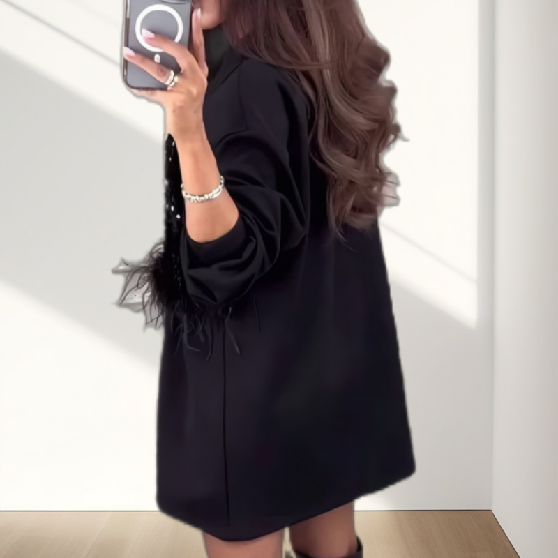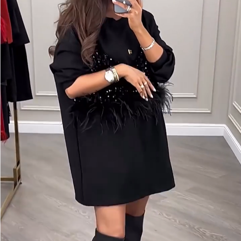 MODNY WYGLĄD PIÓR - Dzięki modnym elementom ze sztucznych piór ta sukienka dodaje zabawnego, a jednocześnie wyrafinowanego elementu do Twojego stroju, poprawiając ogólny wygląd.