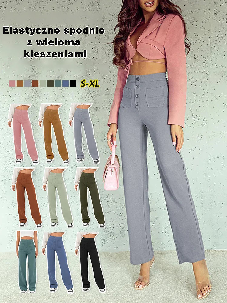Elastyczne spodnie z wieloma kieszeniami