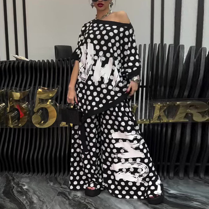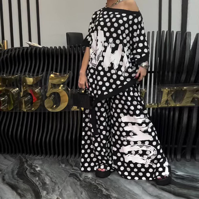1*Damski modny top w dużym rozmiarze i szerokie spodnie 2-częściowy zestaw