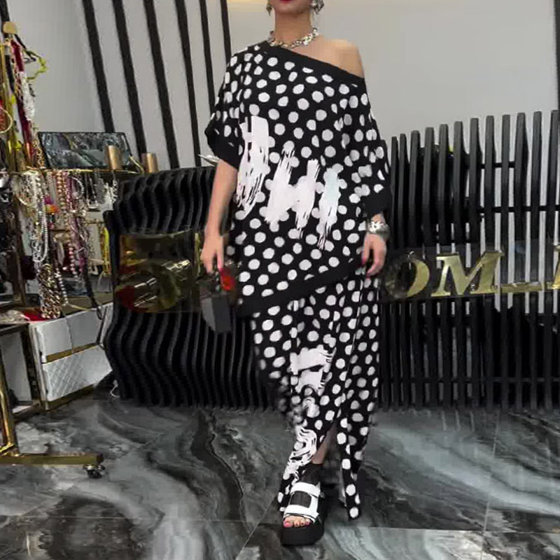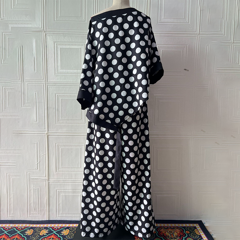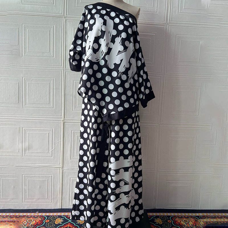 Elegancki i ponadczasowy wzór w kropki: Klasyczny czarno-biały wzór w kropki dodaje natychmiastowego wyrafinowania.