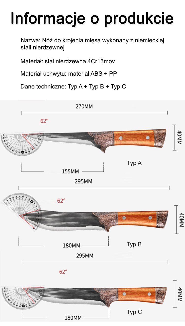 Niemiecki nóż do mięsa mielonego ze stali nierdzewnej