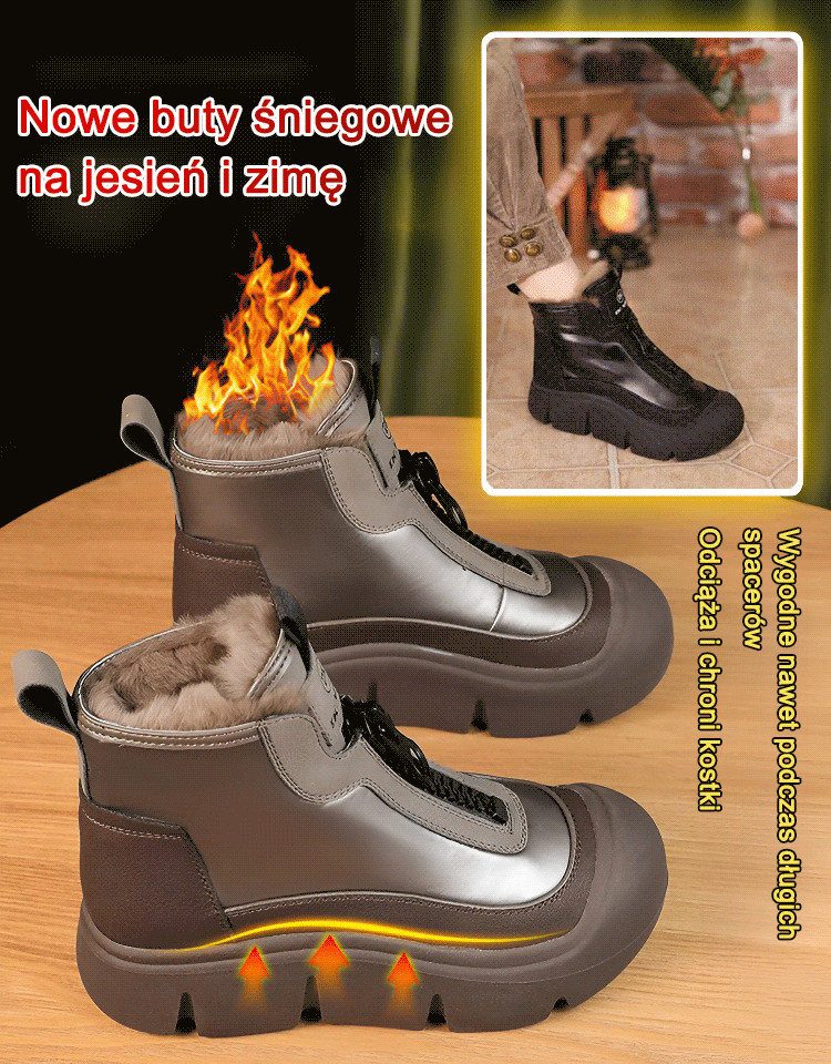 Stylowe, krótkie śniegowce z grubą podeszwą