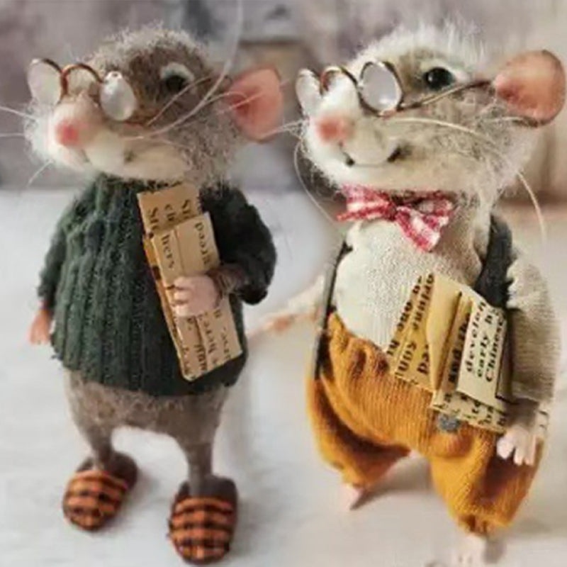 📰Filcowa mysz w okularach i muszce trzymająca starą gazetę może ozdobić półkę na książki, kominek, stolik nocny lub dekorację świąteczną.