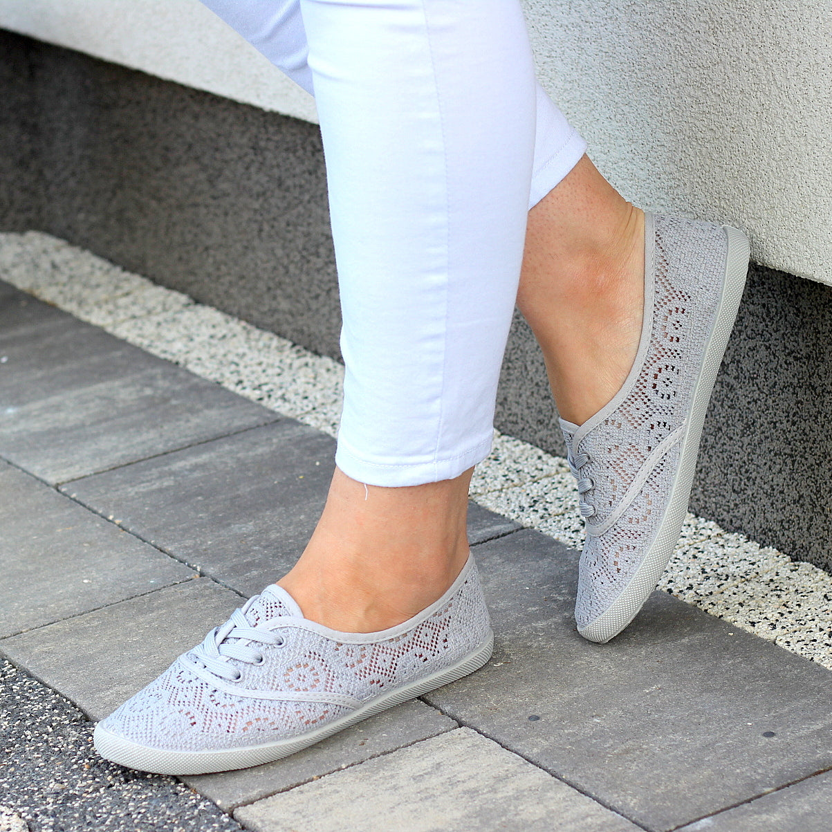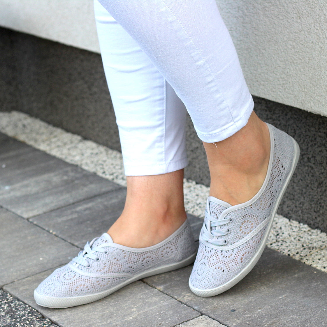 Szare mięciutkie tenisówki damskie wykonane z przewiewnej koronki