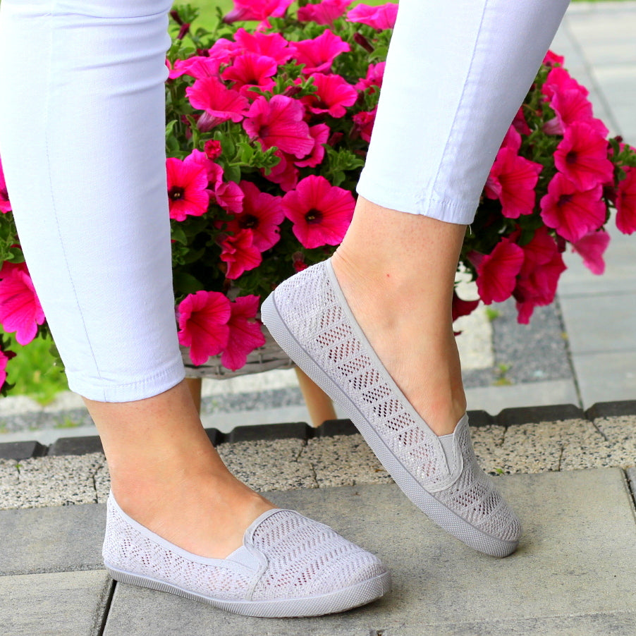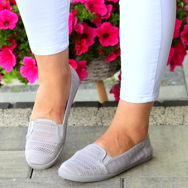 SZARE TENISÓWKI KORONKOWE NA LATO