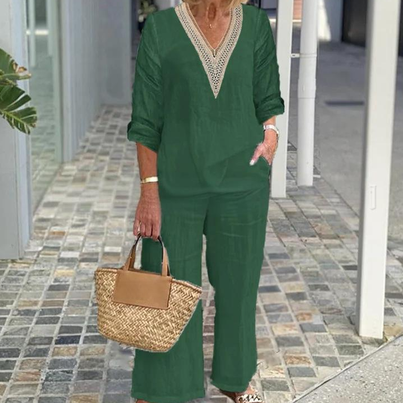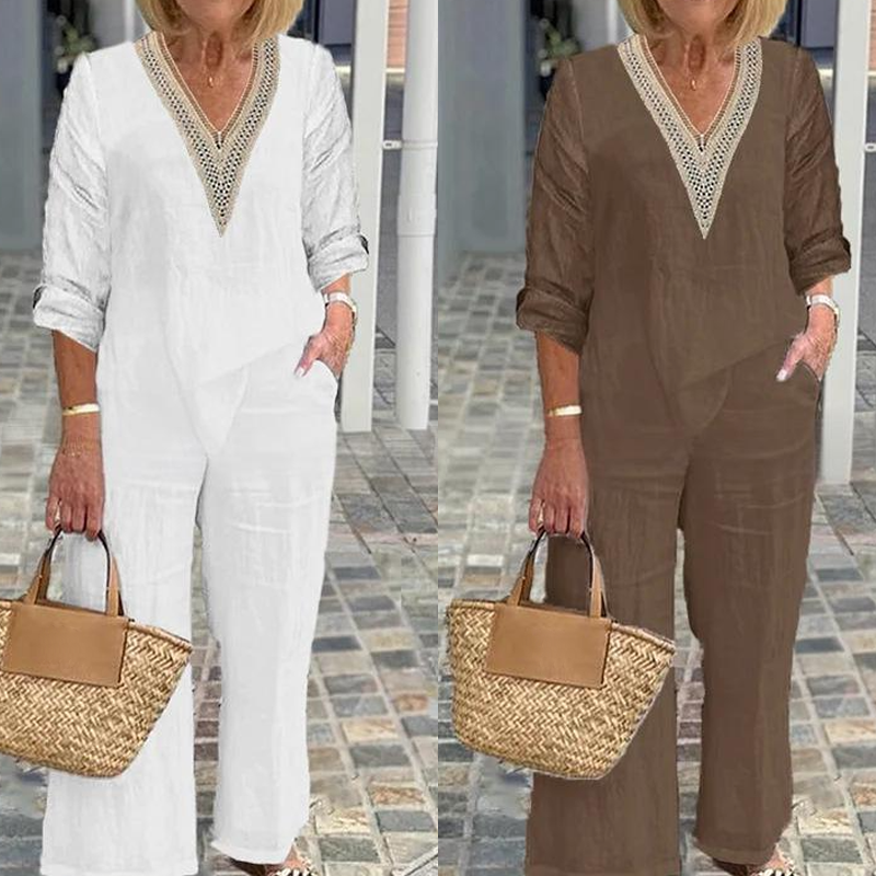 【S-3XL】✨Damski top z dekoltem w serek i szerokimi nogawkami