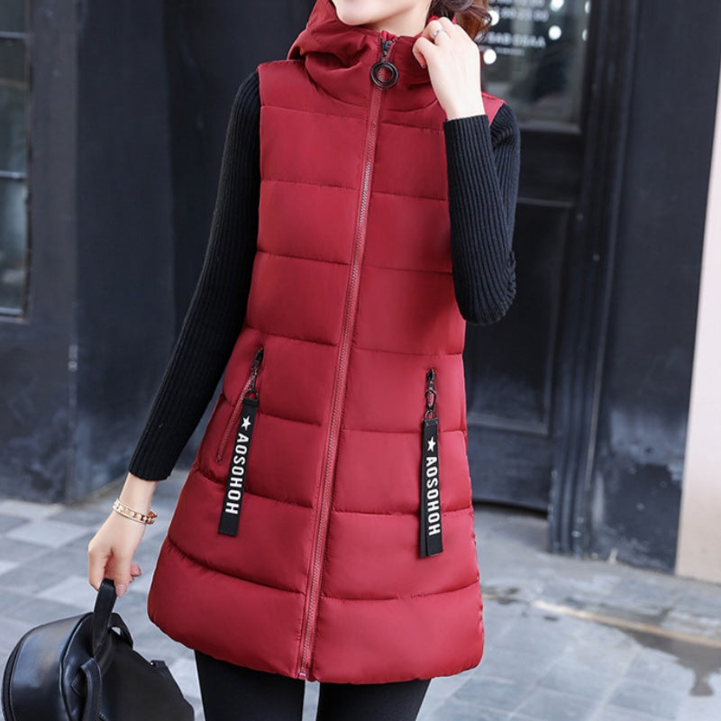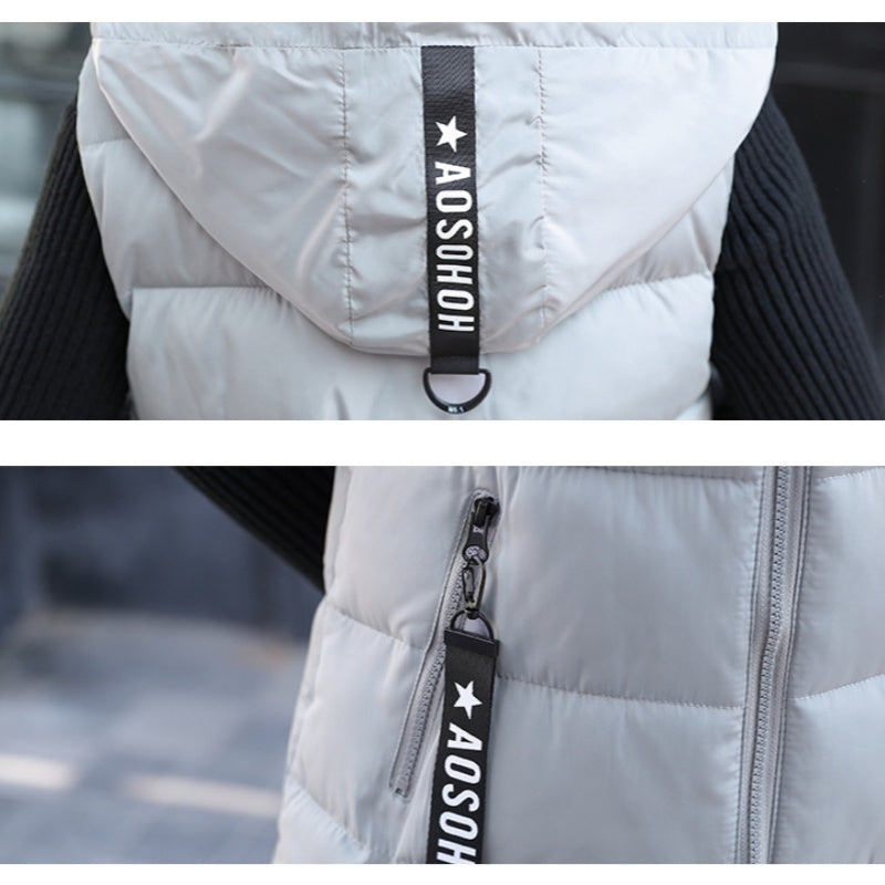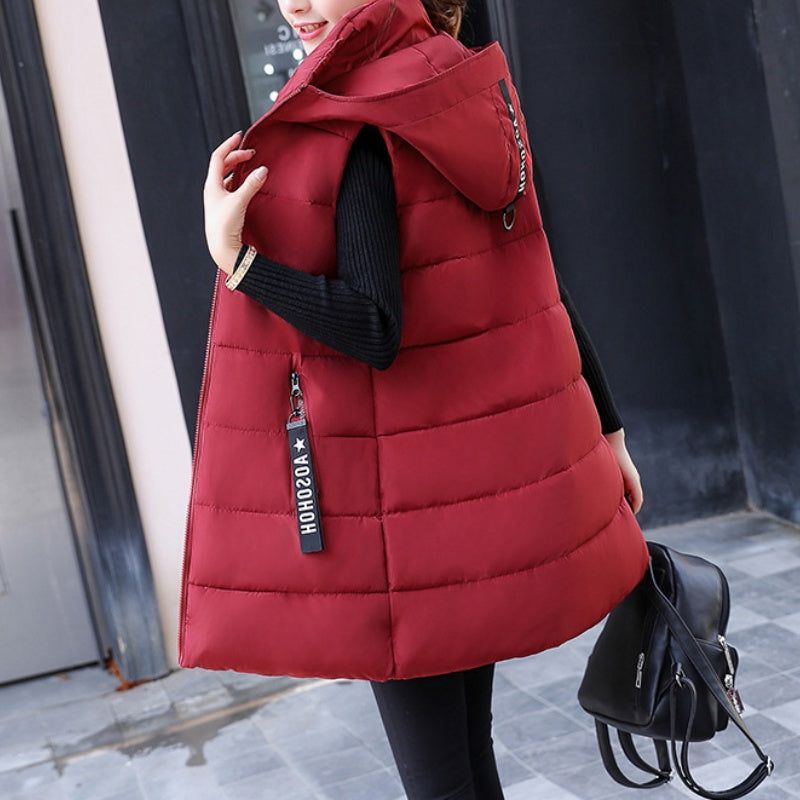 KAMIZELKA KAPSUŁOWA : Ta klasyczna kamizelka z kapturem ma dopasowany krój, który podkreśla sylwetkę. Kaptur dodaje modnego akcentu, zapewniając jednocześnie dodatkowe ciepło przed zimnym wiatrem.