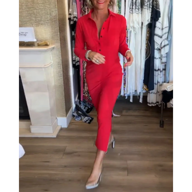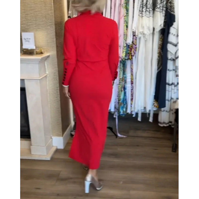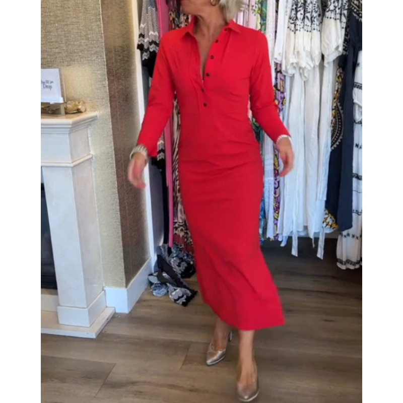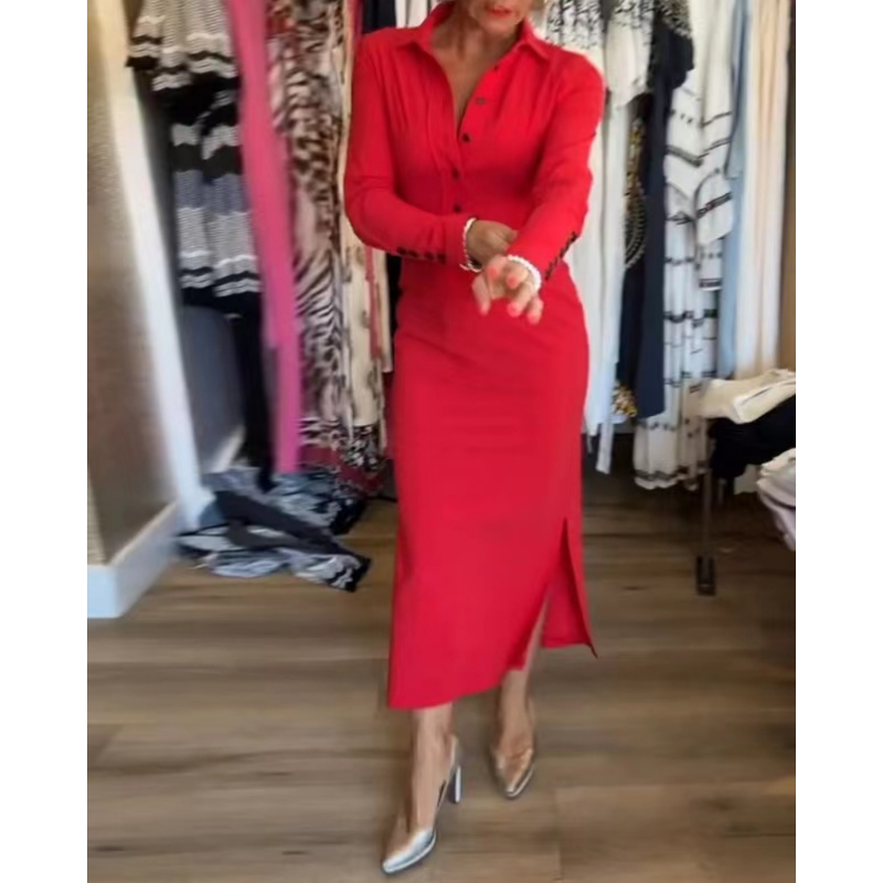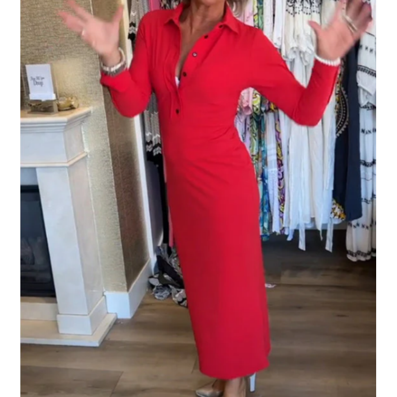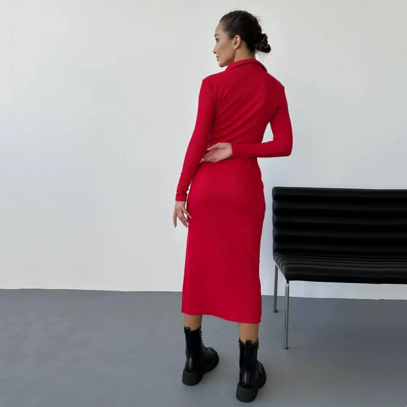 Seksowna czerwona sukienka damska z długim rękawem i klapami