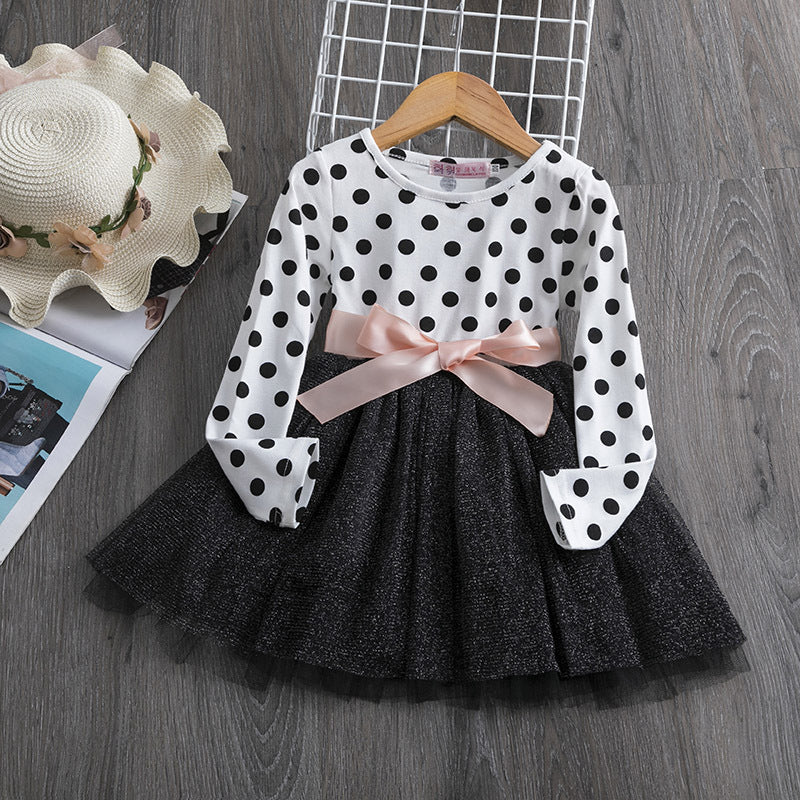 Wiosenna dziewczęca sukienka w kropki z długim rękawem