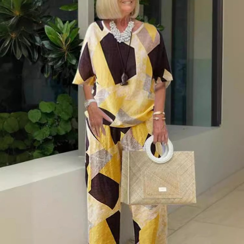 Pakiet zawiera: 1*Modny damski luźny top z półrękawkiem & Spodnie dwuczęściowe