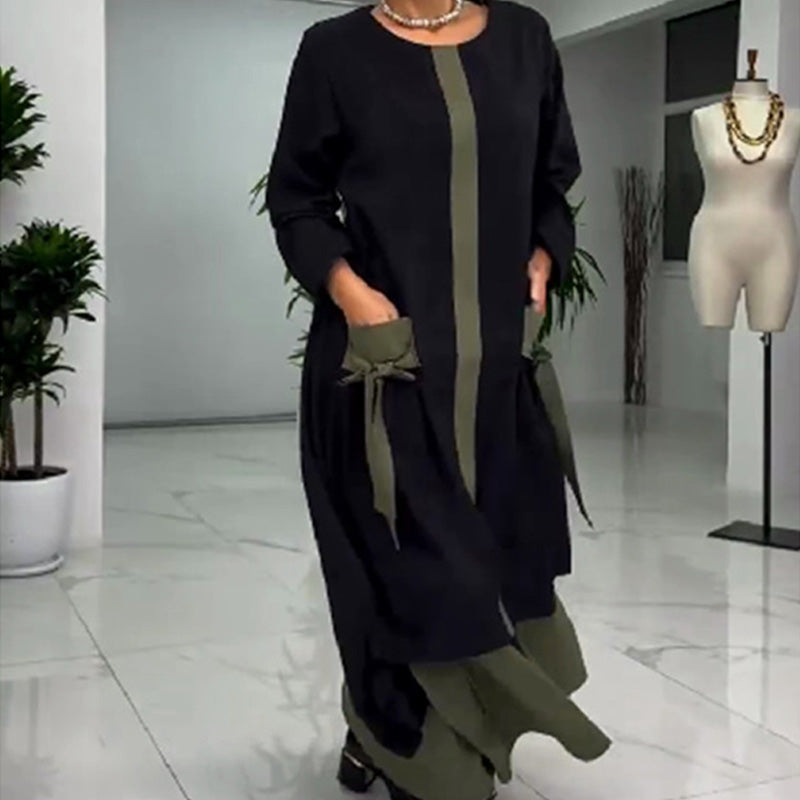 Pakiet zawiera: 1* Elegancka, luźna sukienka maxi dla kobiet w bloki kolorów