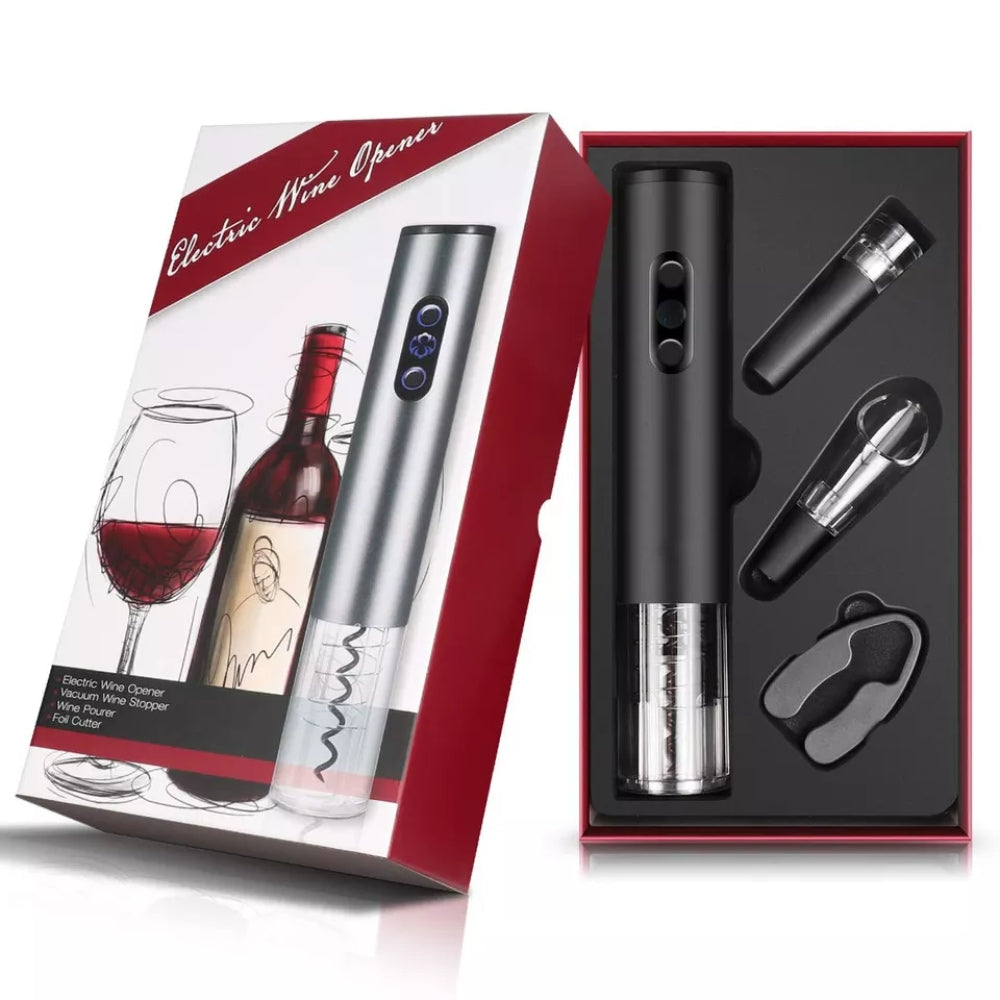 Zestaw 4 w 1 do wina, otwieracz elektryczny, zatyczka próżniowa, aerator i obcinacz do folii